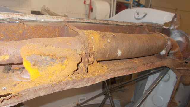 suite au précédent sablage qui je vous le rappelle était un grenaillage ... il s'est formé dans les corps creux un agglomérat de grenaille rouillée