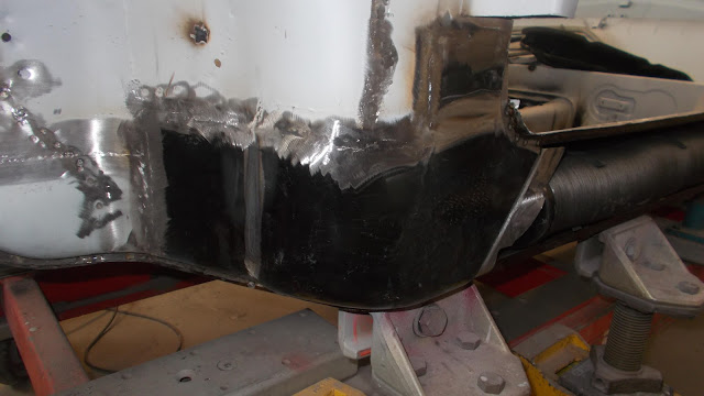 Si le remplacement du plancher en partie centrale suffit généralement à sauver pas mal de 911, cette fois ci , l'état du plancher et des soubassement exige le remplacement complet , c'est une opération délicate ...